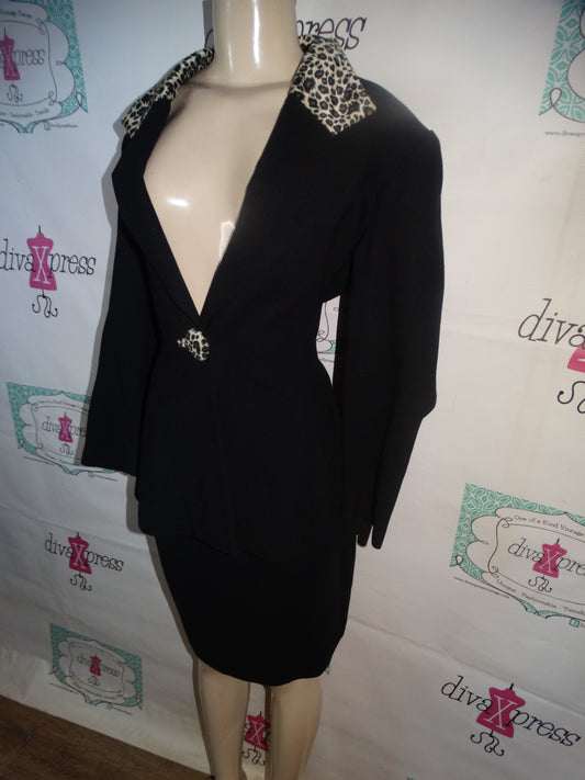 Vintage Laura Madigrano Black/Leopard 2 piece Skirt Set Size XL