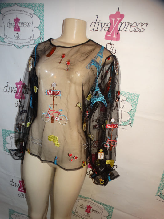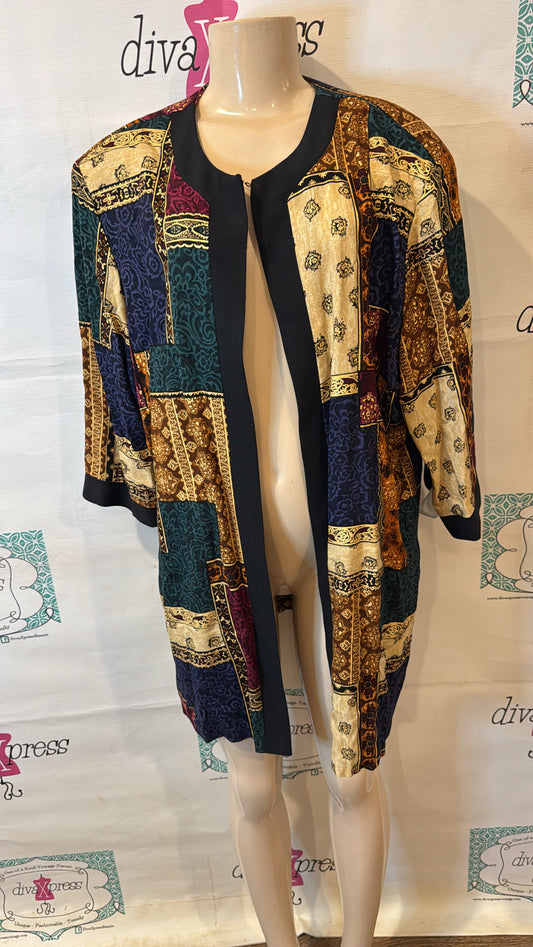 Vintage Ellen Fiigg Blue/Green Floral Blazer Size XL