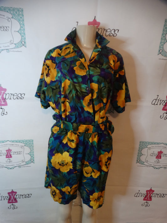 Vintage Cristin Stevens Floral Purple GReen 2 Piece Short Set Size XL