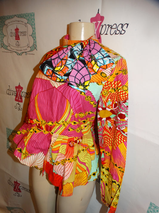 Vintage Colorful Bow Tie High Low Peplum Top Size M