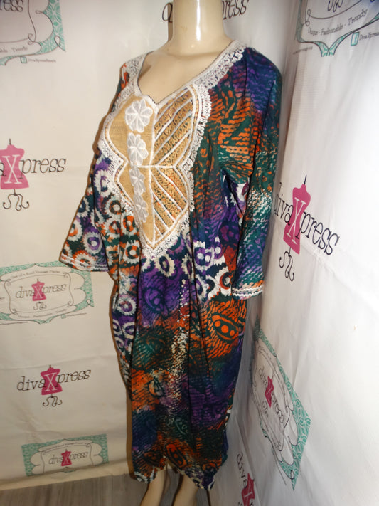 Vintage Purple/Green African Print Dress Size 2x