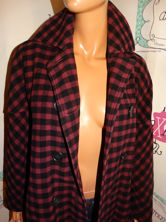 Vintage Purple/Black Plaid Poncho Style Coat Size 1x