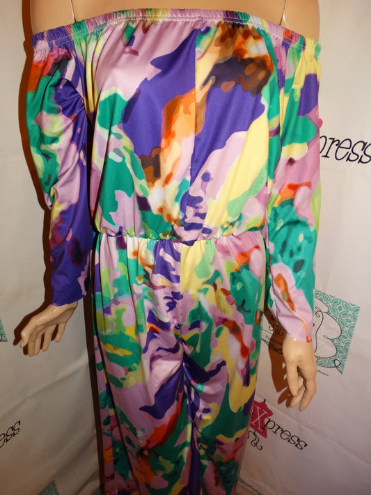 Vintage Purple/Green Off Shoulder Romper Size M