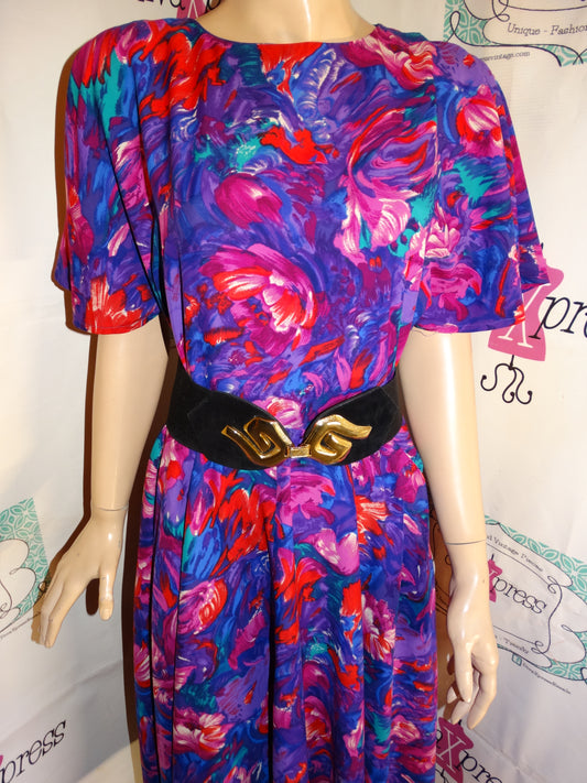 Vintage Purple/Pink Colorful Dress (Belt/Accessories Not Included) Size M