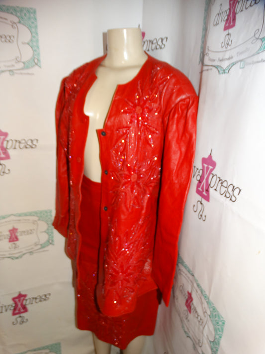 Vintage Raggmattaz Red Leather 2 Piece Skirt Set Size XL