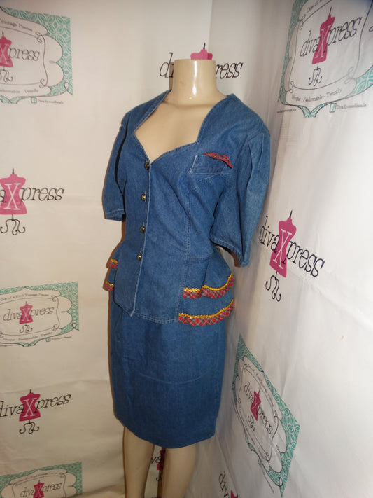 Vintage Ramson Blue Jean 2 Piece Skirt Set Size 1x