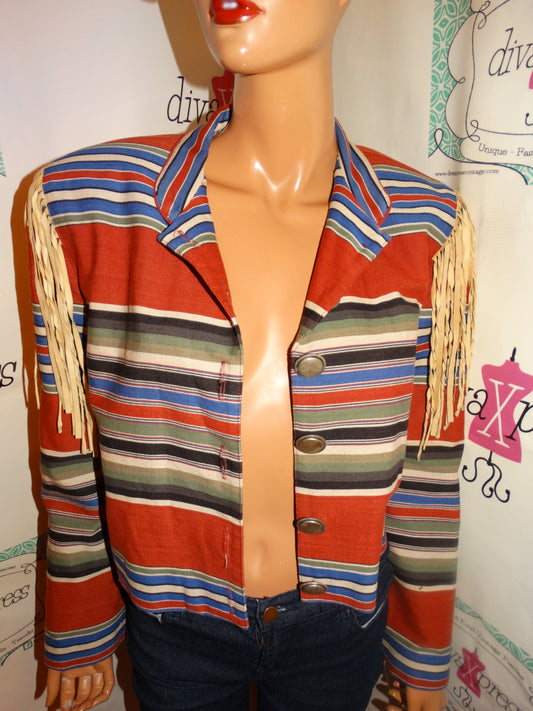 Vintage Randy Kemper White Colorful Stripe Blazer Size M