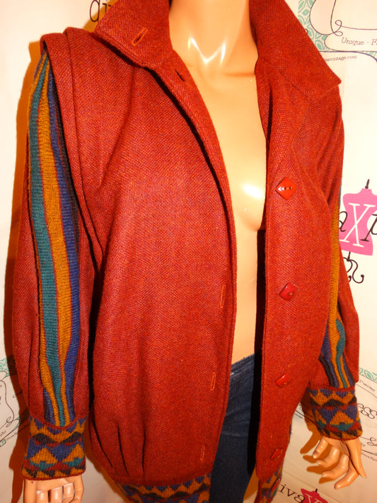 Vintage ragamuffin Coral Colorful Sleve Sweater Jacket Size XL
