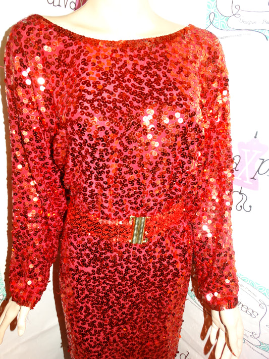 Vintage Red Sequins Dress W Belt Size L