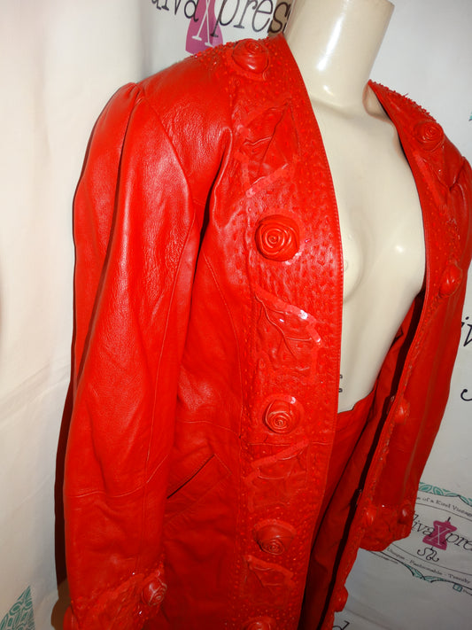 Vintage Red Leather Rose Detail 2 Piece Skirt Set Size XL