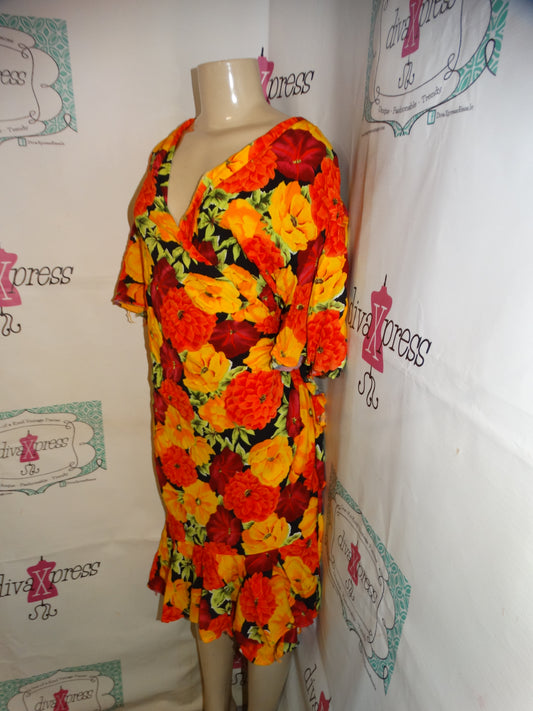 Vintage Robert TOO Orange Floral Dress Size 1x