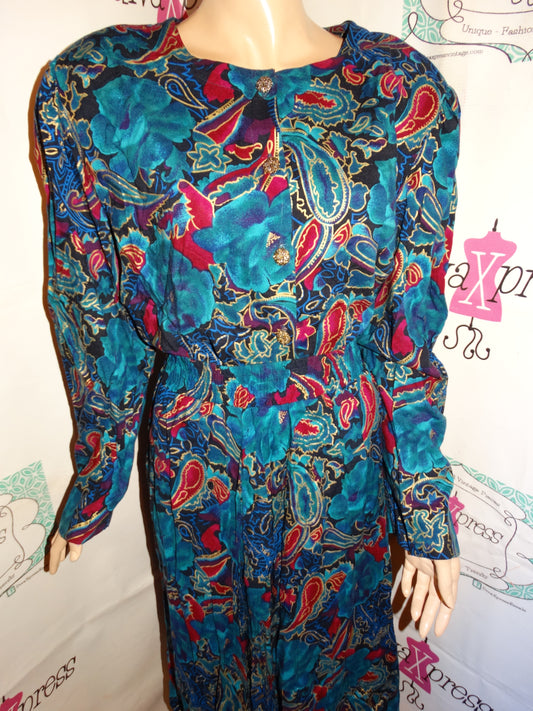 Vintage RK ORignals GReen/Purple Pink 2 Piece Skirt Set Size 1x