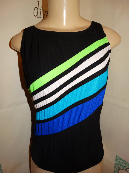 Vintage Robby Len Black Line Green/Blue Swimsuit Size XL