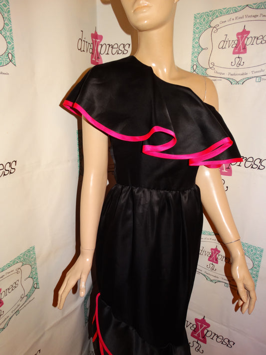 Vintage Rizk Black/Pink Off Shoulder Ruffle Dress Size S