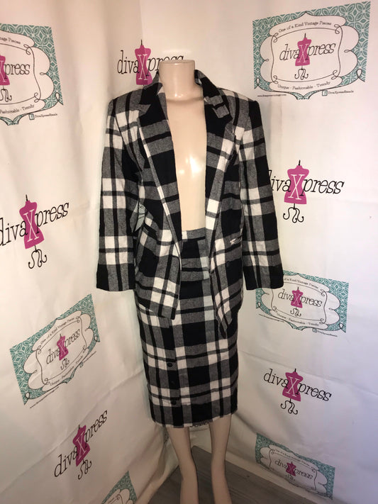 Vintage Rocky Black/White Plaid 2 Piece Skirt Set Size S-M