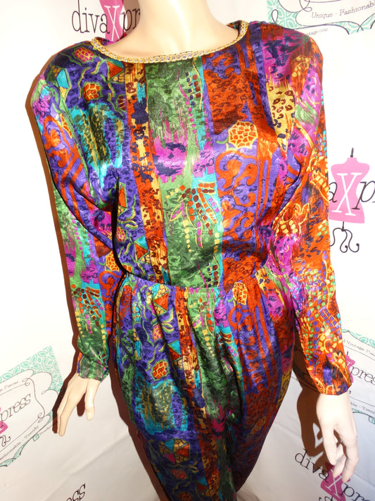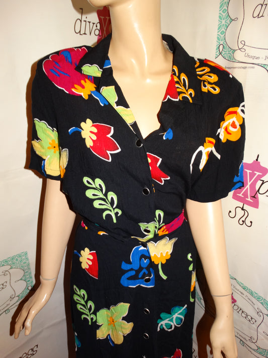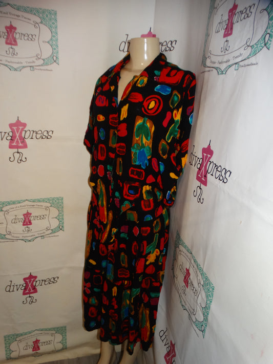Vintage Rylan Black Colorful Dress/Duster Blouse Size L