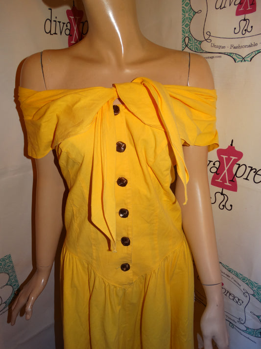 Vintage S. L Fashions Yellow Off Shoulder Dress Size M