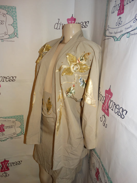 Vintage S & S Sensations Tan Gold Beaded 2 Piece Skirt Set Size 1x