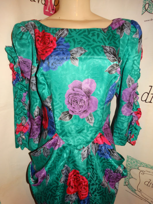 Vintage Secrets Green Floral Dress Size M