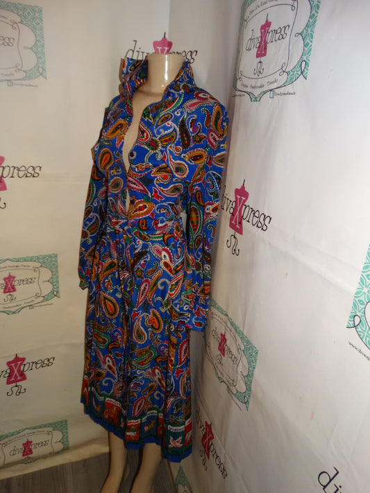 Vintage Schrader Blue Colorful Zodiac Dress Size 1x