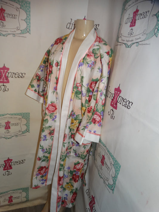 Vintage Say Lu White Floral Duster Size 2x