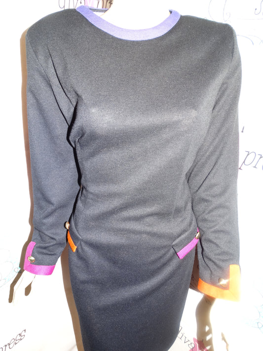 Vintage Schrader Black Colorful Color Block Dress Size L
