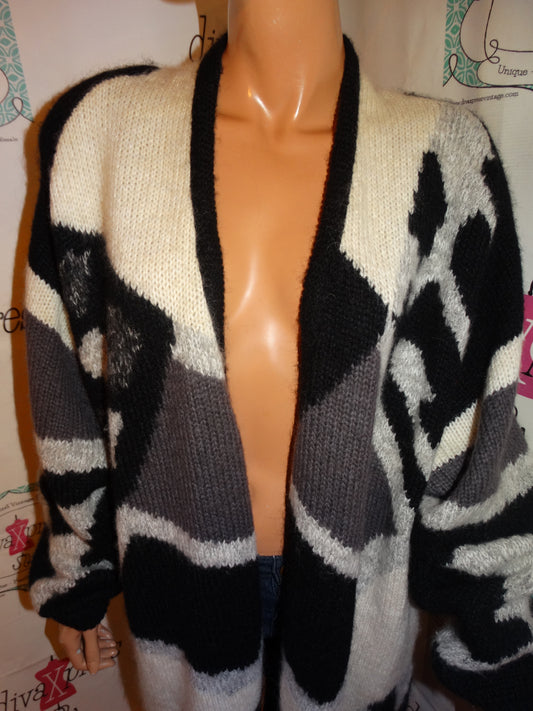 Vintage Seque Black/Whte Sweater Coat Size 1x-2x