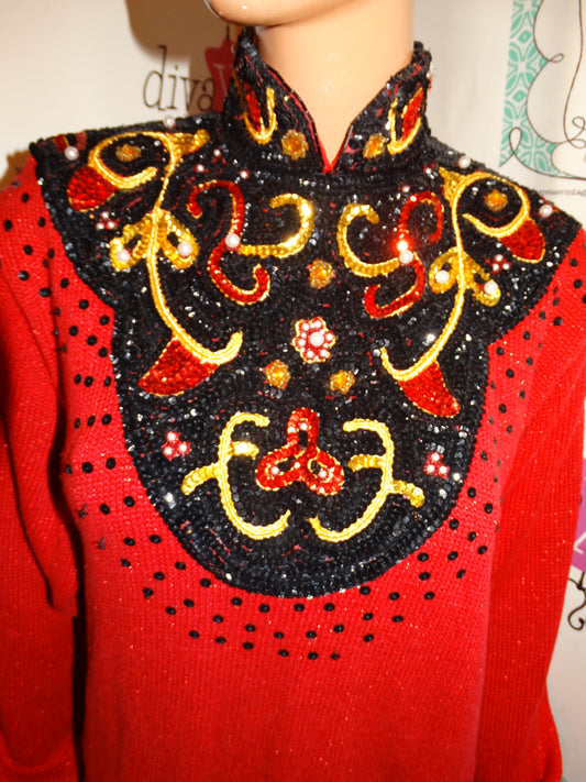 Vintage Eminment Red Heavy Sequins Sweater Size L