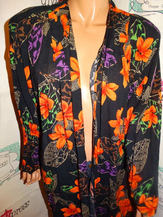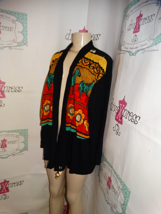 Vintage Sharon Anthony Black Colorful Throw Size XL