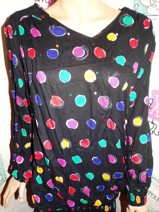 Vintage Shara Black Colorful Blouse Size L