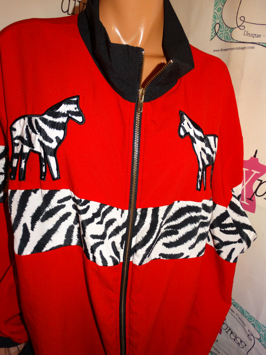 Vintage Siliver Threads Red Zebra Bomber Jacket size 3x
