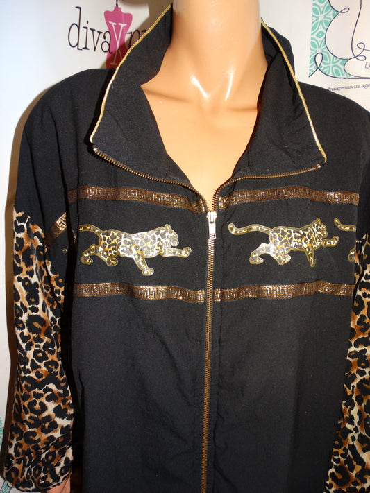 Vintage Silver Threads Black Leopard Light Jacket Size 3x