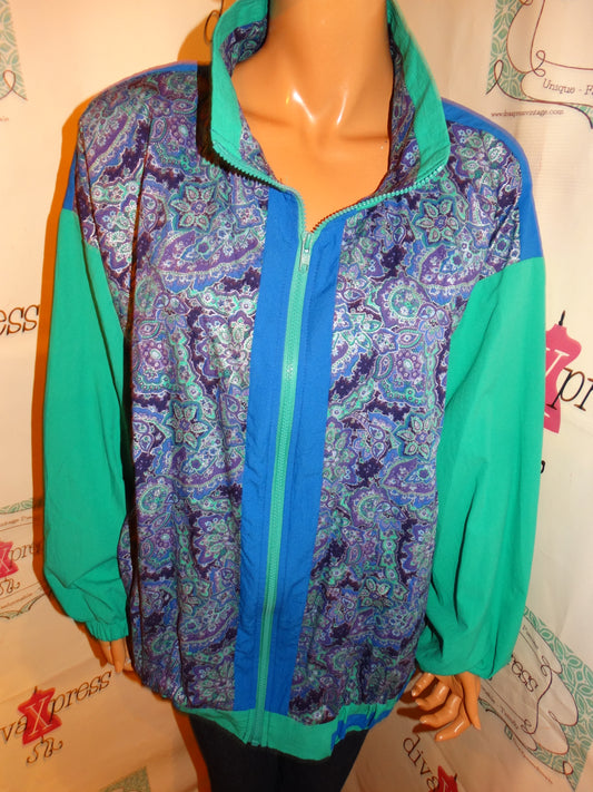 Vintage Silver Threads Green/Blue Colorblock Jacket Size 2x