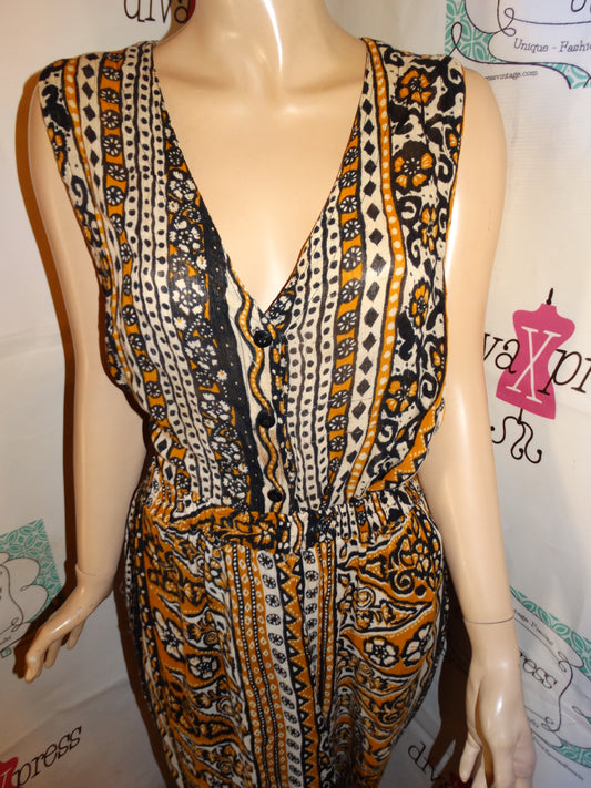 Vintage Sophisticates Gold/Black Draped Dress Size M