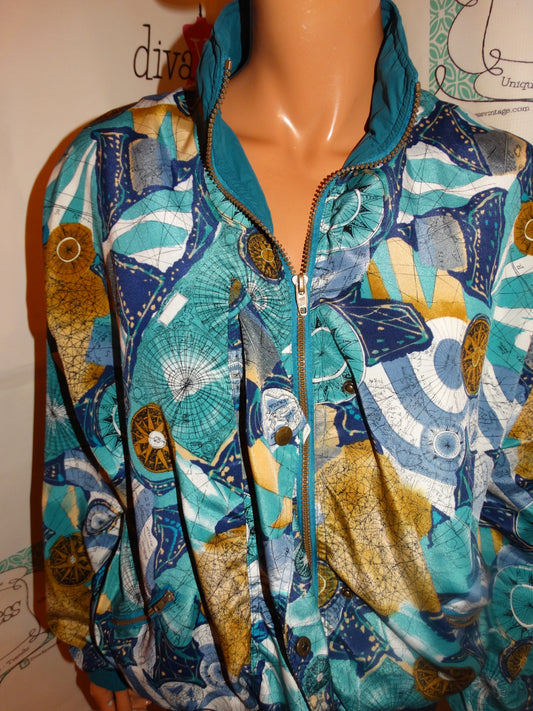 Vintage Solar Green/Blue Compass Bomber Jacket Size L