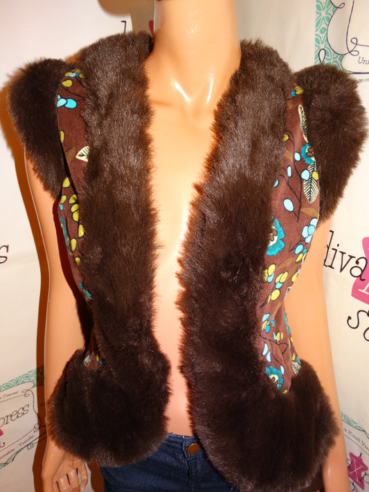 Vintage Sooki Des La Brown Faux Fur Vest Size S