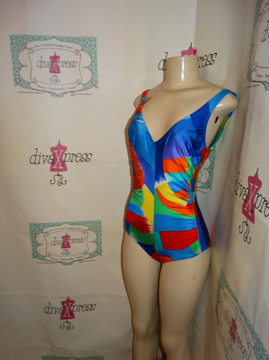 Vintage Ste JAn Marie Neon Colorful Bathing Suit Size M