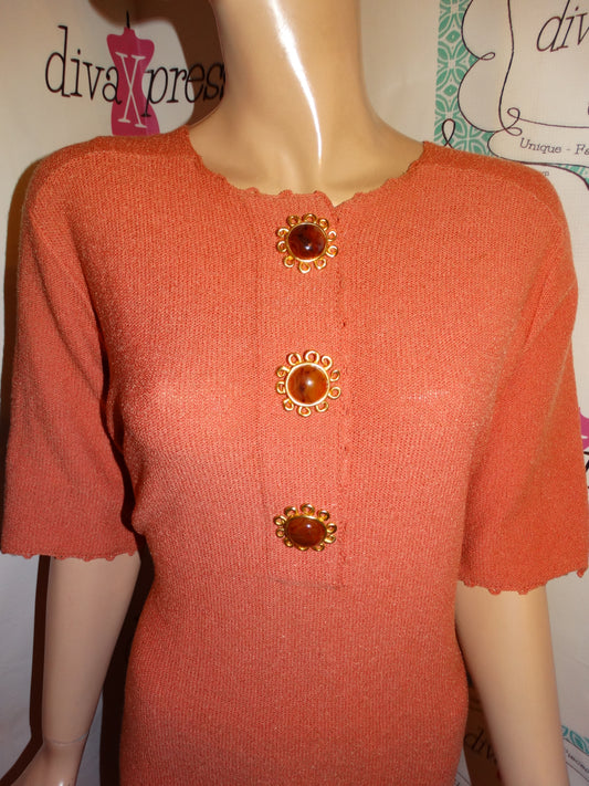 Vintage Steve Fabrikant Coral Beaded Sweater Dress Size 1x