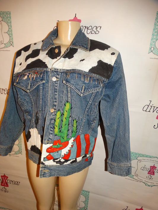Vintage Fresco Custom Jean Cow Print Jacket Size XL