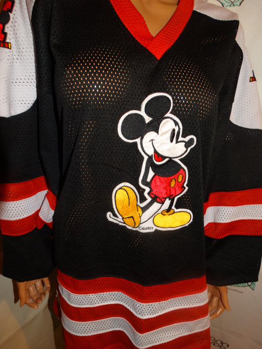 Vintage Genus Mickey Mouse Black/White Red Hockey Jersey Size XL