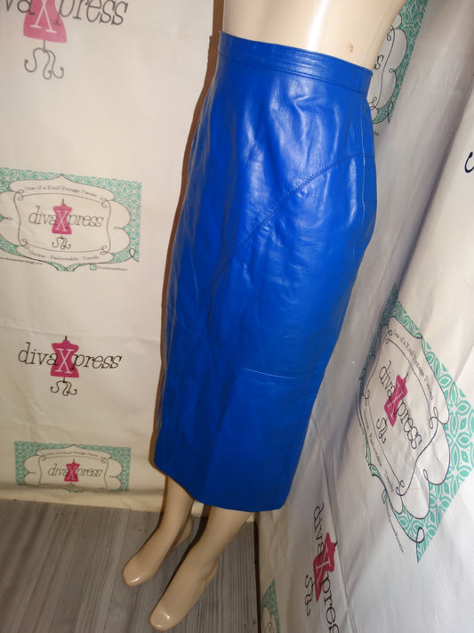 Vintage G I LL Royal Blue Leather Skirt Size L