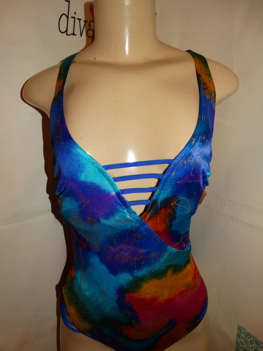 Vintage Swimsuit Purple Colorful Bathing Suit Size M