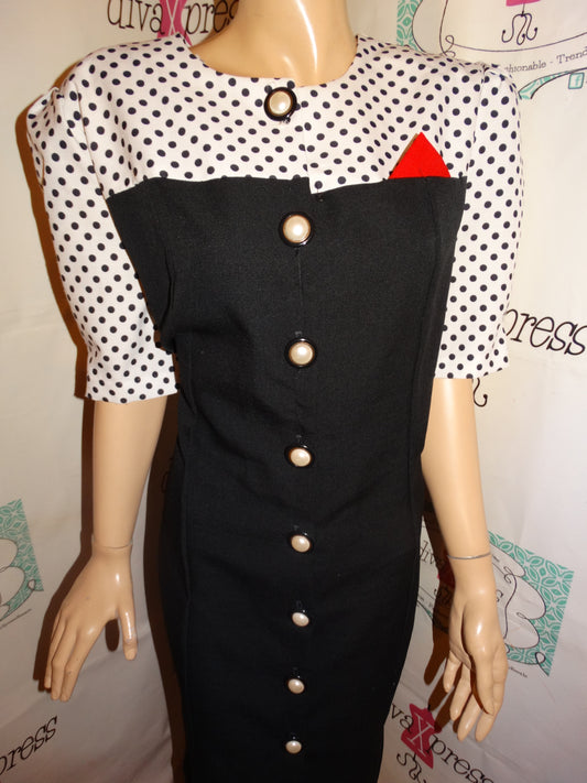 Vintage T& T Black/White Polka Dot Dress Size XL