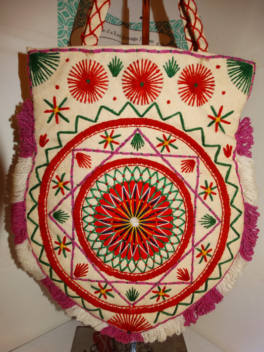 Vintage Tan Colorful Leather Handle Speedy Style Purse Size M