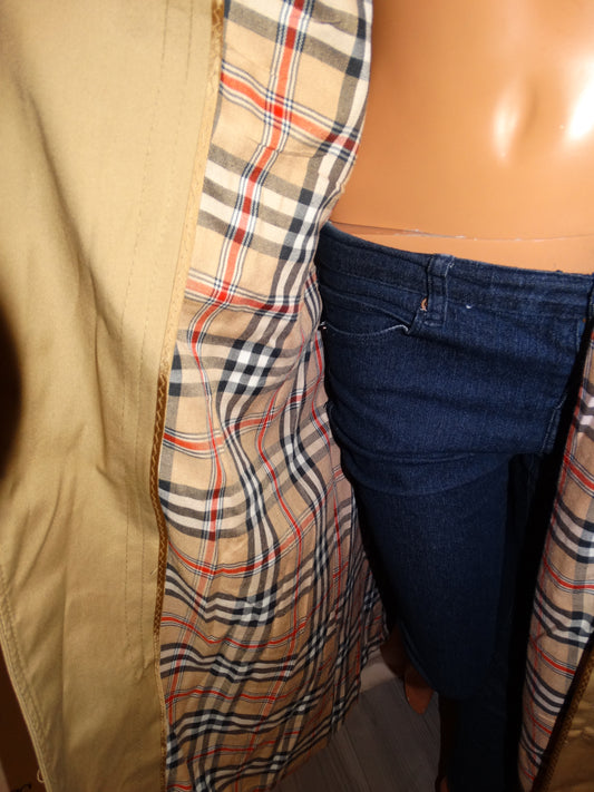 Vintage Tan Authentic fur Lined Trench Coat Size S