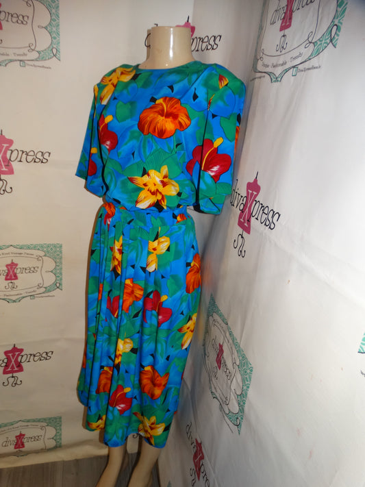 Vintage TAn Jay Blue Colorful 2 Piece Skirt Set Size XL