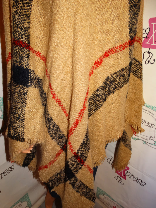 Vintage Tan Plaid Poncho Size 1 size Fits All
