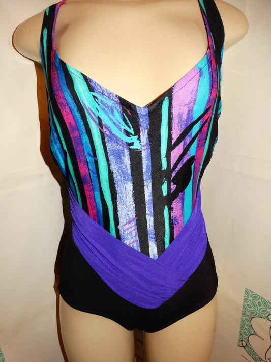Vintage The Slim Suit Black Cololful Swimsuit Size M