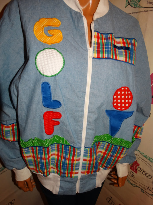 Vintage The Frog Pond Blue Jean Golf Colorful Jacket Size L