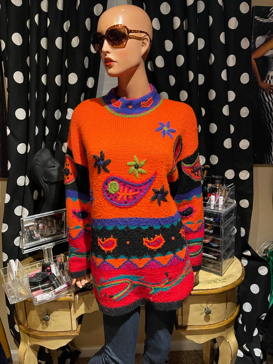 Vintage The Miles Black Colorful Orange Sweater Size 1x
